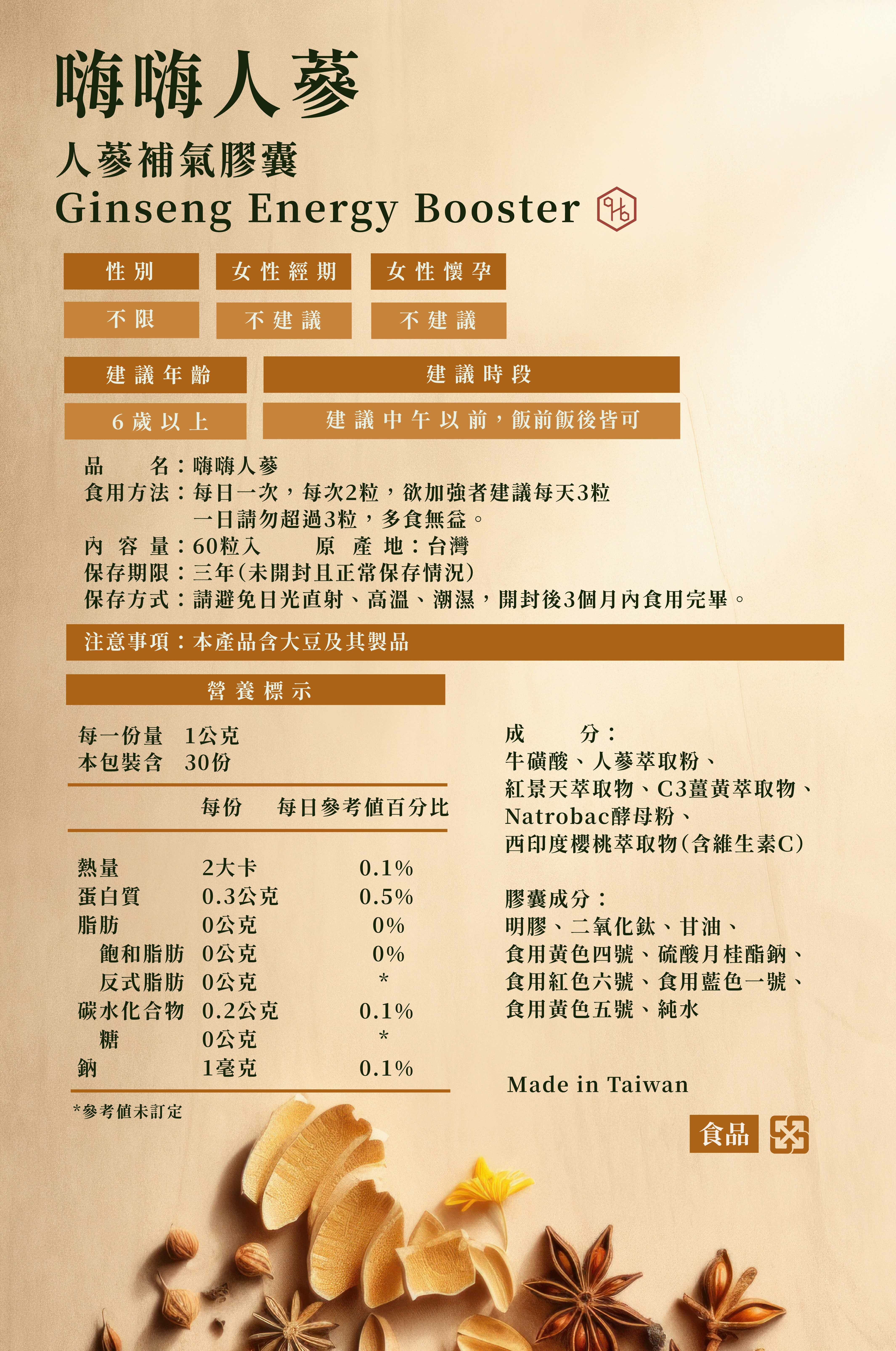 ● 市面唯一 : 漢方人蔘補氣+綜合B群提神